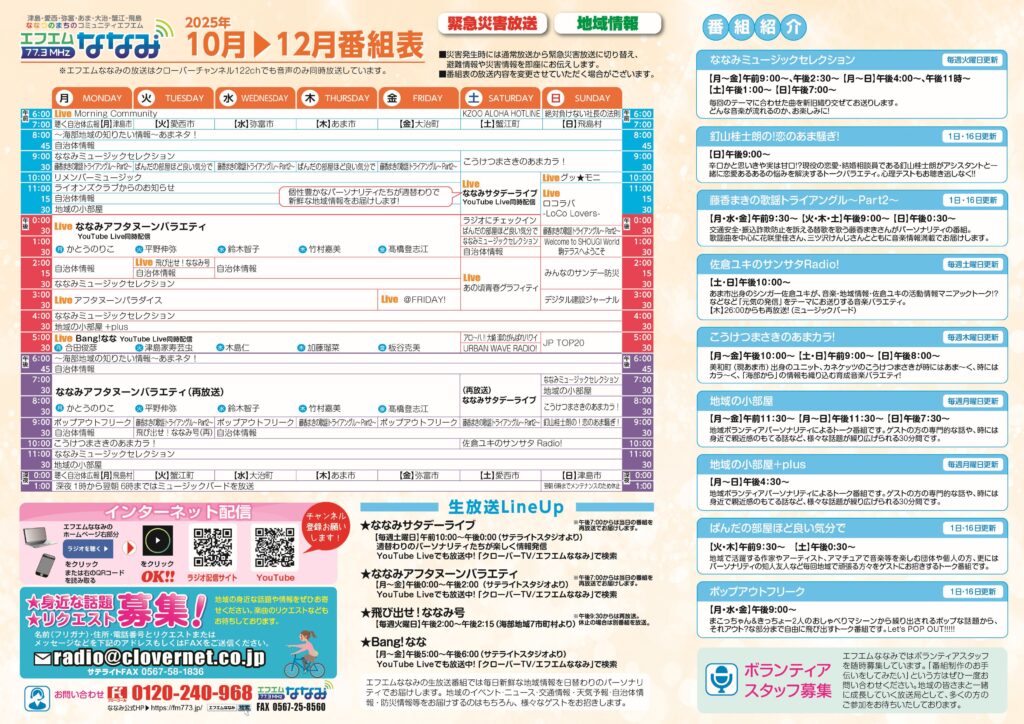 月曜日から金曜日まで、エフエムななみサテライトスタジオ(ヨシヅヤJR蟹江駅前店1F)より生放送!